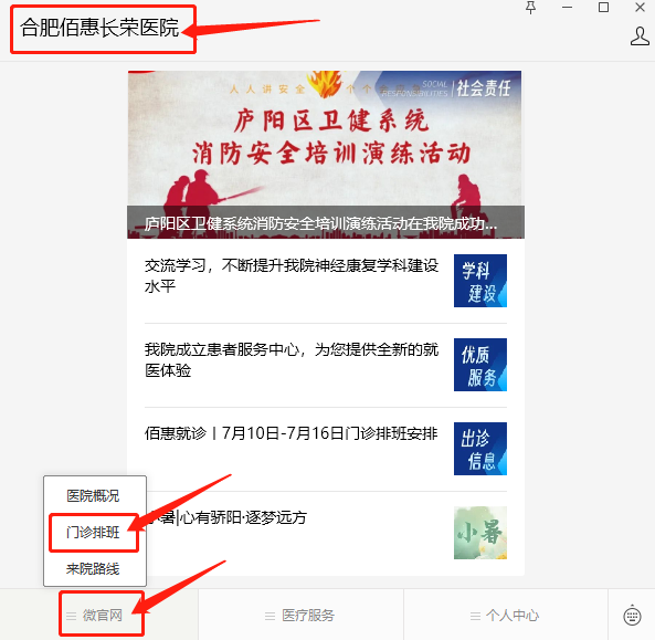 門診排班早知道。為了便捷就醫(yī),我院微信服務號門診排班界面可以查詢到門診排班表。