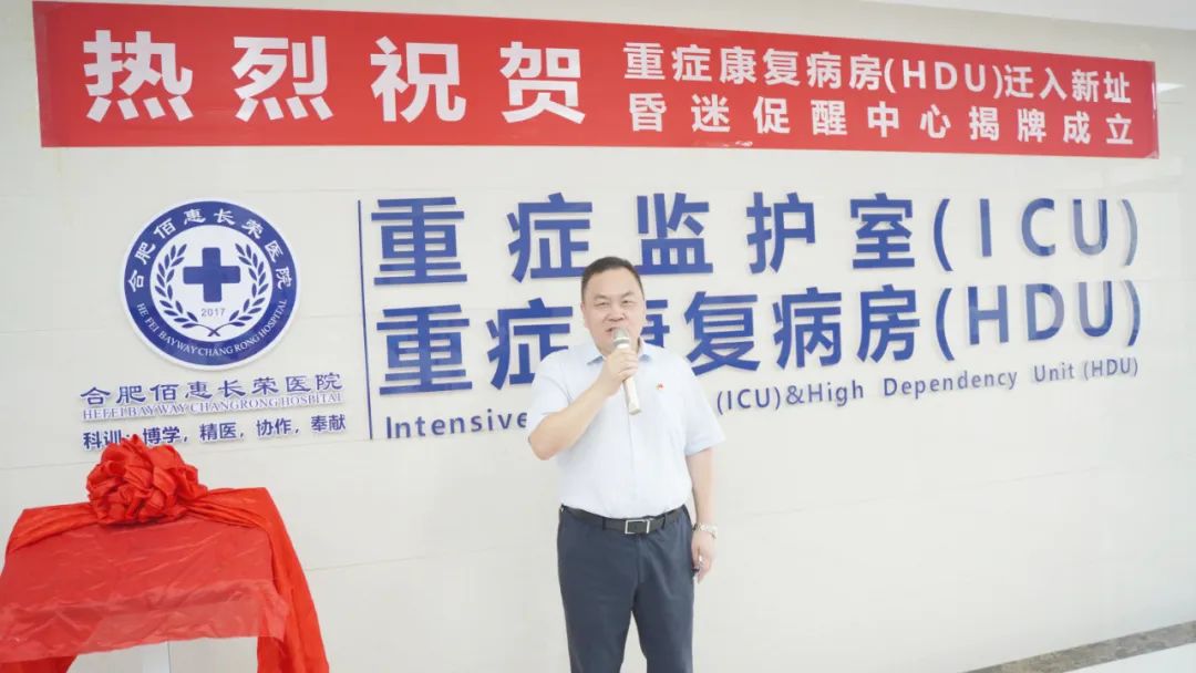 儀式伊始,合肥佰惠長(zhǎng)榮醫(yī)院HDU/ICU行政主任戚生春在發(fā)言中表示,非常感謝上級(jí)領(lǐng)導(dǎo)們對(duì)于重癥康復(fù)病區(qū)的搬遷以及昏迷促醒中心的成立所給予的大力支持和幫助,重癥康復(fù)病房的升級(jí)改造及昏迷促醒中心的成立將開(kāi)啟科室康復(fù)事業(yè)發(fā)展的新起點(diǎn)。他表示將帶領(lǐng)科室團(tuán)隊(duì)成員全力以赴,充分展示和發(fā)揮神經(jīng)重癥康復(fù)昏迷促醒的特色,立足于自身優(yōu)勢(shì),建設(shè)一個(gè)具有特色的康復(fù)???,為安徽省乃至全華東地區(qū)患者的健康保駕護(hù)航。