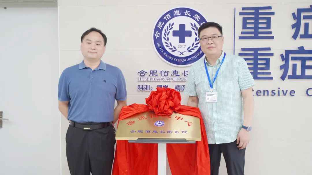 佰澤醫(yī)療集團(tuán)副總裁、合肥佰惠長(zhǎng)榮醫(yī)院院長(zhǎng)盧繼忠,合肥佰惠長(zhǎng)榮醫(yī)院神經(jīng)外科首席專家張永明共同為“昏迷促醒中心”揭牌。