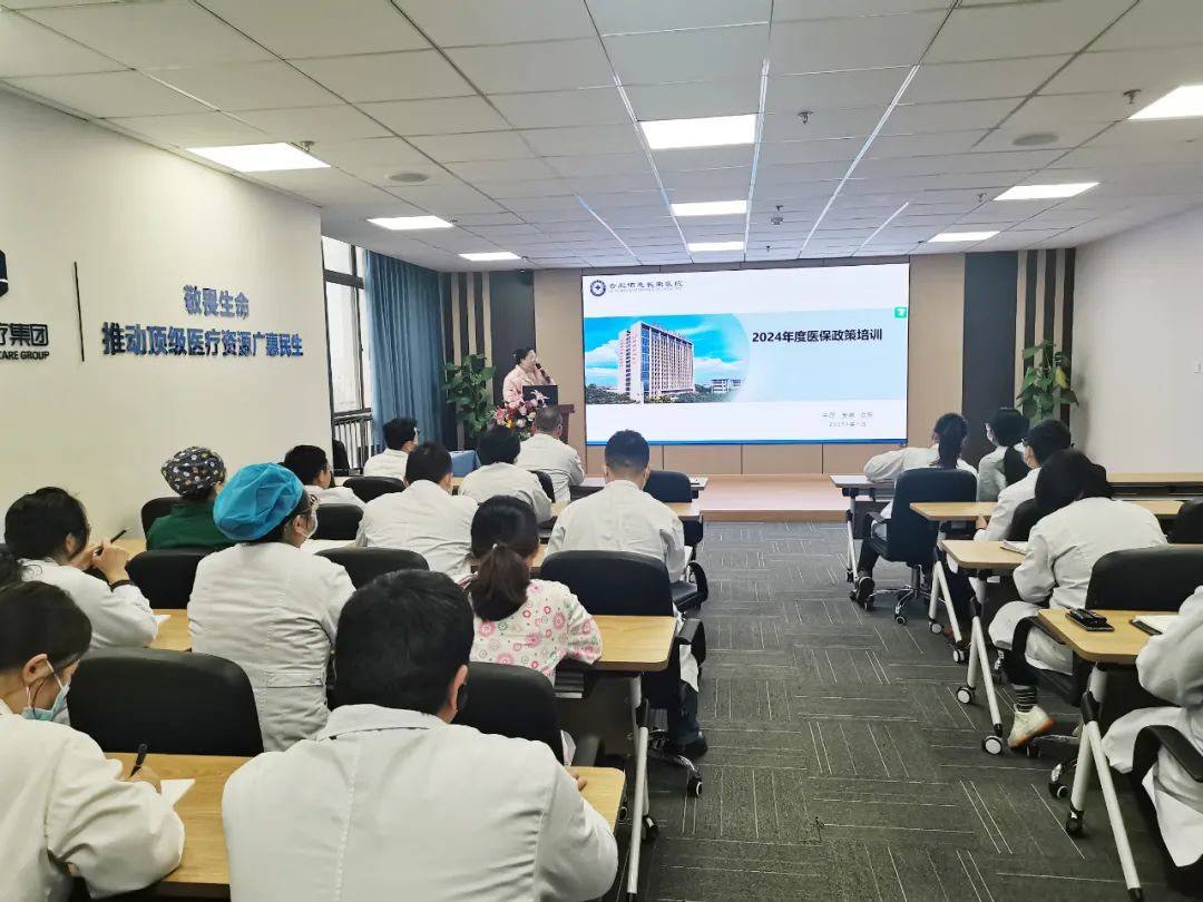 醫(yī)保辦主任王芳芳以《2024年度醫(yī)保政策培訓(xùn)》為題,詳細(xì)講解了2023年醫(yī)?;颊呷虢M情況以及2023年醫(yī)院DRG數(shù)據(jù)匯總情況,從醫(yī)?;菊?、分類、管理到DRG分組編碼等方面作了深入分析,同時(shí),她還詳細(xì)解讀了2024年最新的醫(yī)保政策、病例點(diǎn)數(shù)計(jì)算方式、門診慢性病政策以及病案首頁(yè)質(zhì)量控制等方面的內(nèi)容。