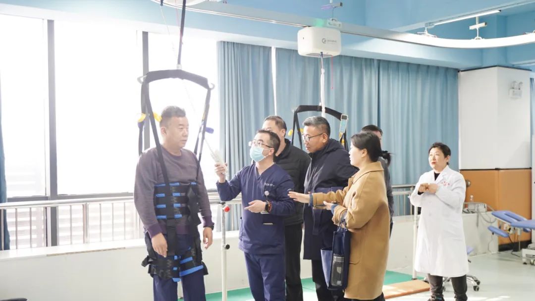 參觀過程中,河南武陟濟民醫(yī)院院長杜宏偉一行實地參觀了我院的智能康復(fù)大廳、神經(jīng)康復(fù)病區(qū)、重癥康復(fù)病區(qū)、血液透析中心、早篩中心以及門診等區(qū)域,并對我院的學(xué)科特色、智能康復(fù)設(shè)備、業(yè)務(wù)發(fā)展以及人員配置等方面進行了詳細了解和體驗。