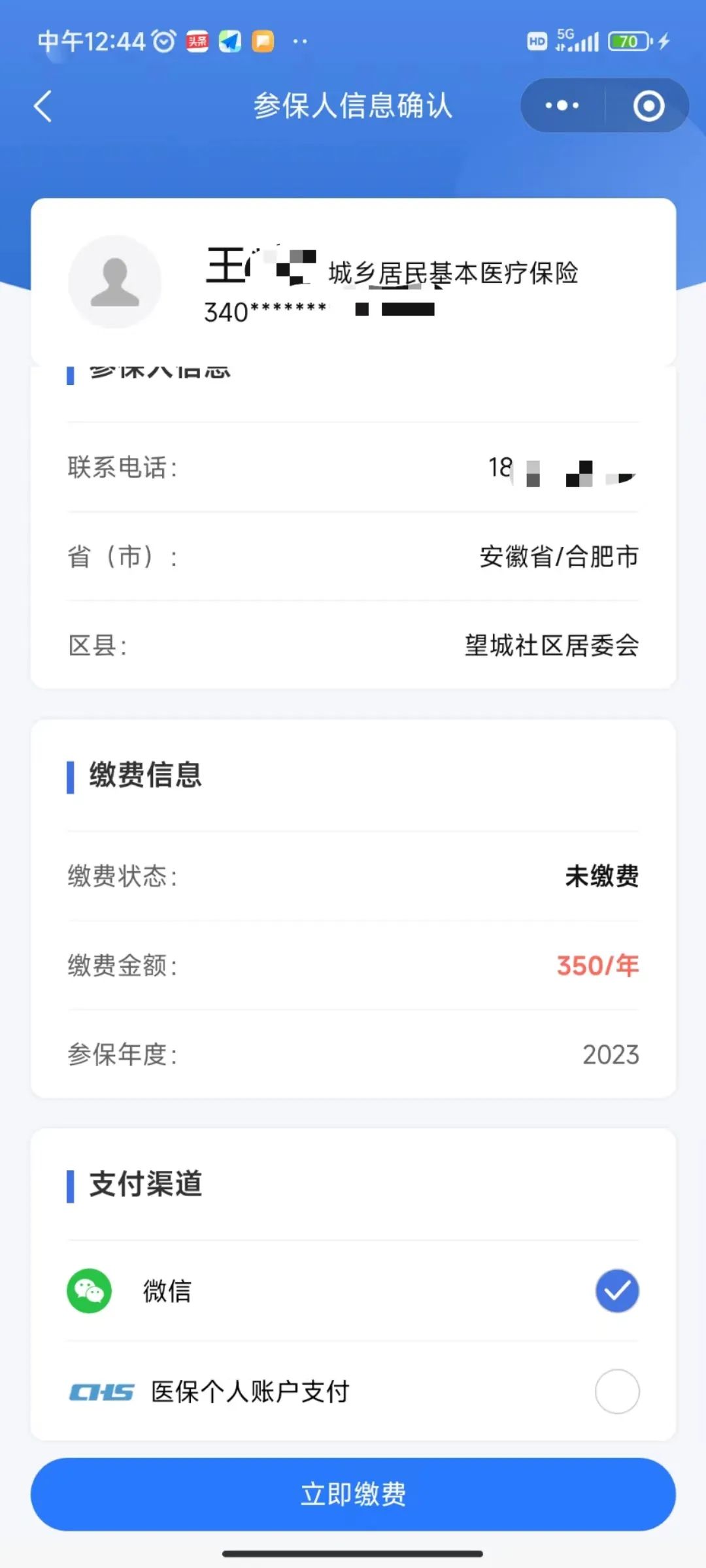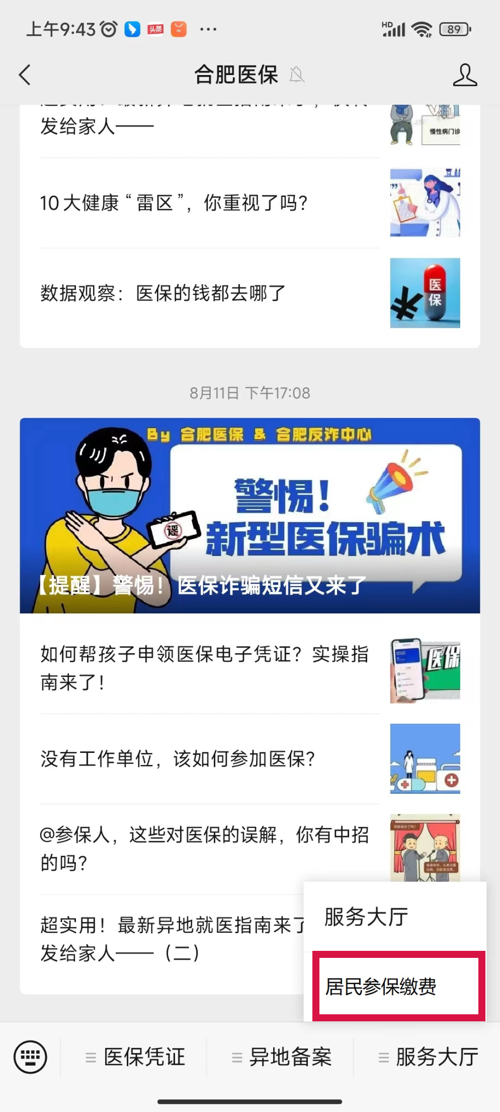 上年度已參保居民可以前往戶籍地或居住地社區(qū)(村)居委會(huì)參保繳費(fèi),也可以通過(guò)“合肥醫(yī)?!蔽⑿殴娞?hào)參保繳費(fèi)。