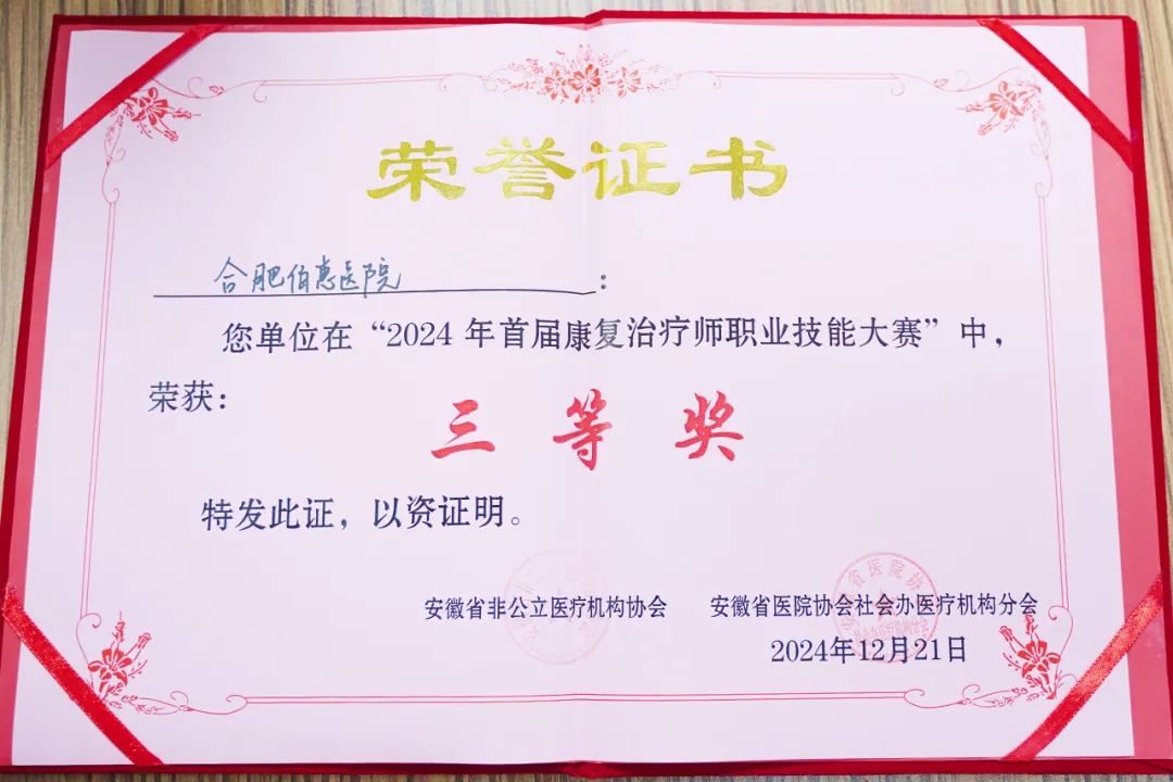 2024年12月20-21日,由安徽省醫(yī)院協(xié)會(huì)社會(huì)辦醫(yī)療機(jī)構(gòu)分會(huì)主辦,分會(huì)康復(fù)??坡?lián)盟承辦的安徽省社會(huì)辦醫(yī)療機(jī)構(gòu)首屆康復(fù)治療師職業(yè)技能大賽在合肥成功舉辦。經(jīng)過理論考試和技能操作展示兩個(gè)環(huán)節(jié),合肥佰惠醫(yī)院代表隊(duì)?wèi){借出色的表現(xiàn)脫穎而出,榮獲三等獎(jiǎng)。