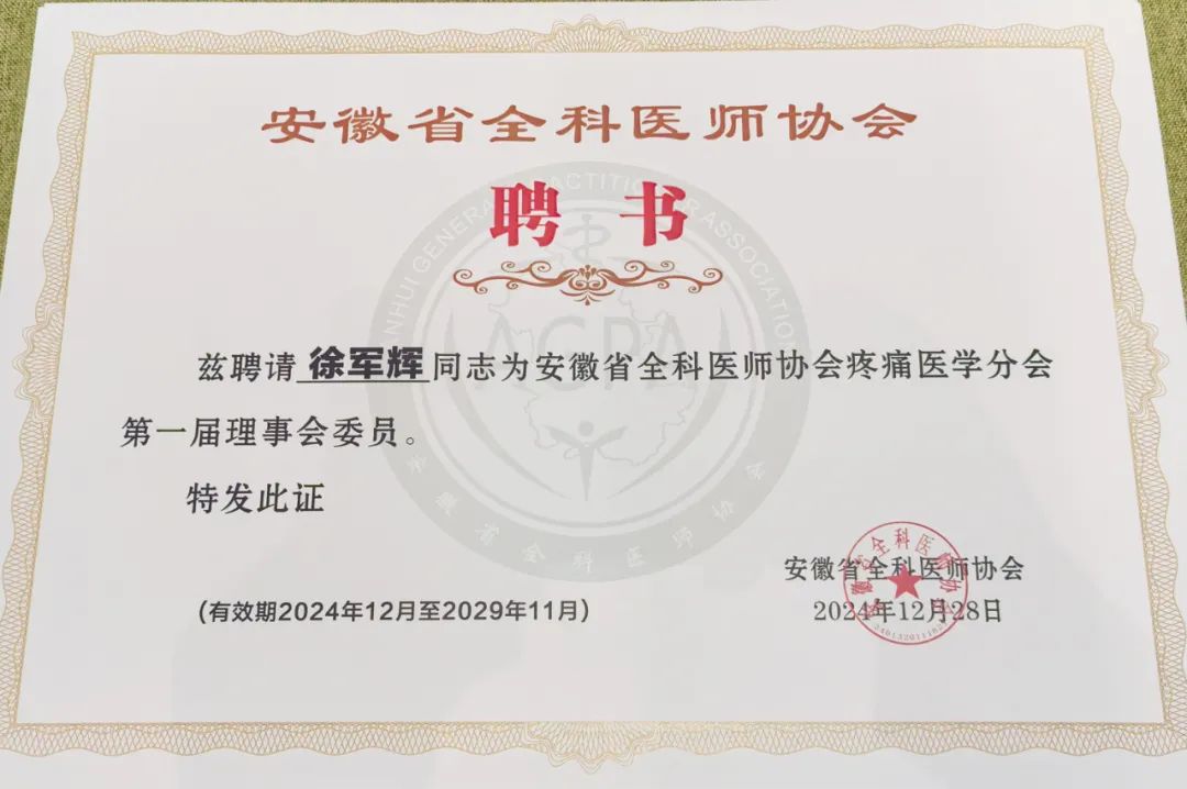 會上,第一屆安徽省全科醫(yī)師協(xié)會疼痛醫(yī)學分會正式宣告成立。經(jīng)大會民主選舉,合肥佰惠醫(yī)院院長助理兼骨科/疼痛科主任胡克寶榮膺安徽省全科醫(yī)師協(xié)會疼痛醫(yī)學分會第一屆理事會常委、骨科康復科主任徐軍輝當選為第一屆理事會委員。這一殊榮不僅是對兩位專家個人專業(yè)能力的認可,更是對合肥佰惠醫(yī)院在疼痛及疼痛康復領(lǐng)域長期深耕與不懈探索的高度肯定。