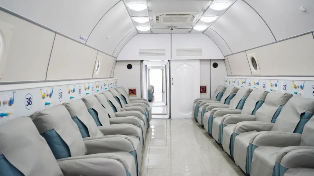 氧艙內(nèi)配有LED照明、可移動(dòng)沙發(fā)座椅、大型冷熱中央空調(diào),專用的吸氧裝置、實(shí)時(shí)視頻監(jiān)控設(shè)備和實(shí)時(shí)語(yǔ)音對(duì)講系統(tǒng)等裝置?;颊呷胙跖摵?,在座位上或者輪椅上坐好,或者在平車上躺好,關(guān)閉艙門(mén)進(jìn)行加壓。壓力升至治療壓力后,戴好吸氧面罩開(kāi)始吸氧。氧氣是通過(guò)單獨(dú)的供氧管進(jìn)入和排氧管排出,間斷吸氧60分鐘后慢慢減壓出艙。