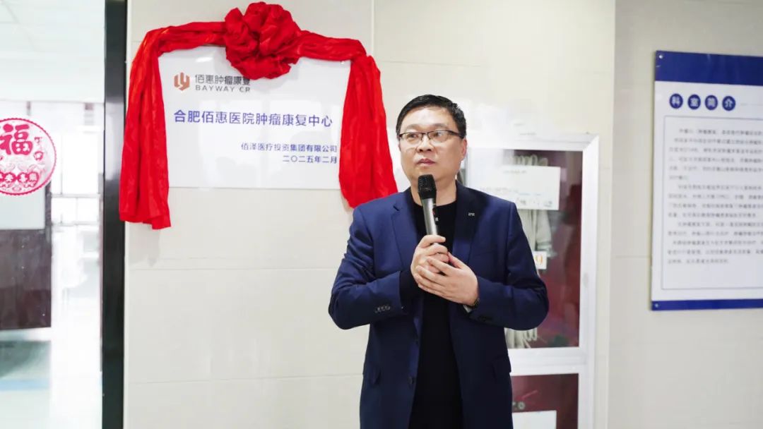 佰澤醫(yī)療集團副總裁、合肥佰惠醫(yī)院院長盧繼忠與腫瘤科/腫瘤康復主任郝文勝共同為腫瘤康復中心揭牌。